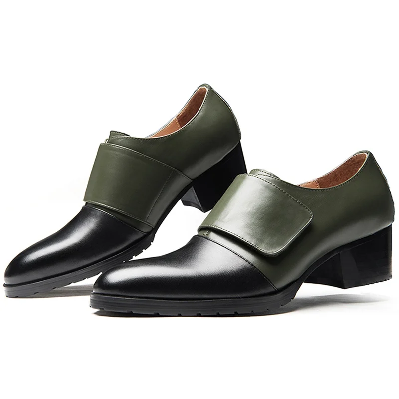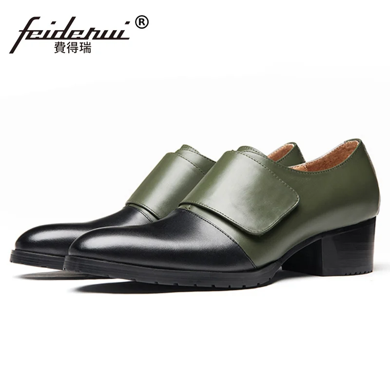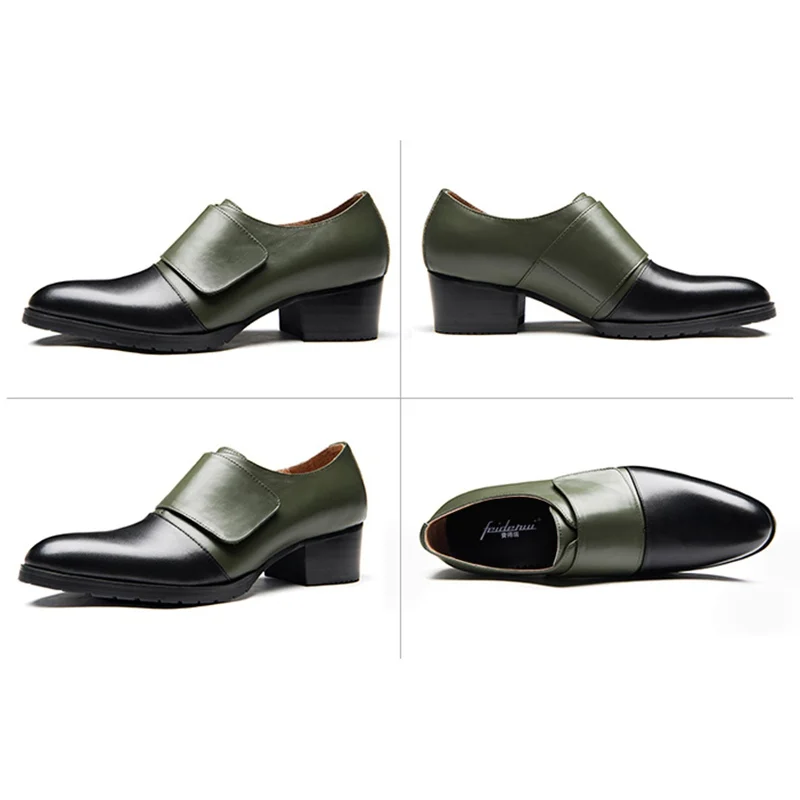 Fashion Natural Genuine Leather High Heels Man Formal Dress Oxfords Pointed Toe Height Increase Men